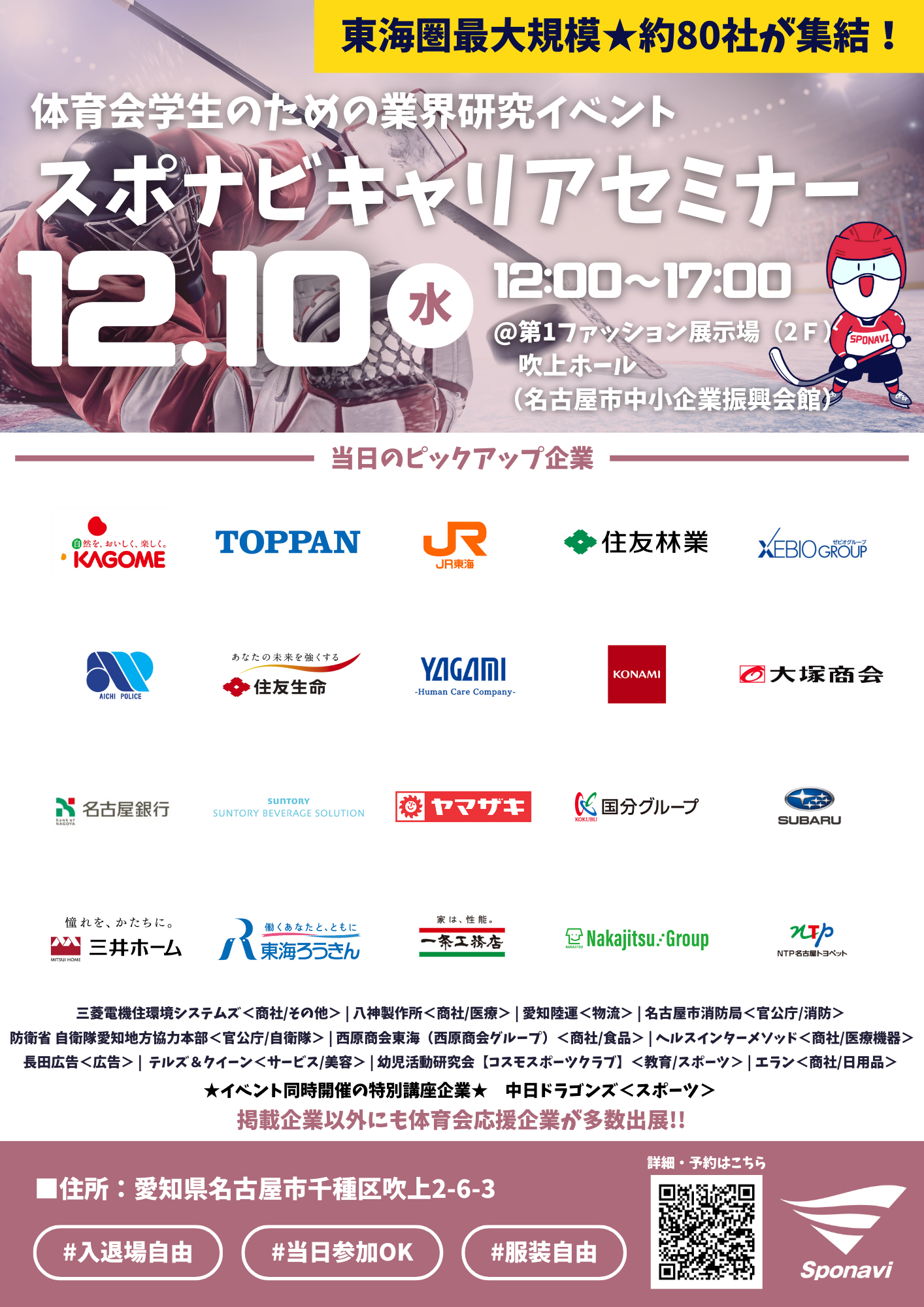 2027年卒業予定(現3年生)体育会学生向け業界研究セミナー 主催:(株)スポーツフィールド お問い合わせ先:052-269-2165